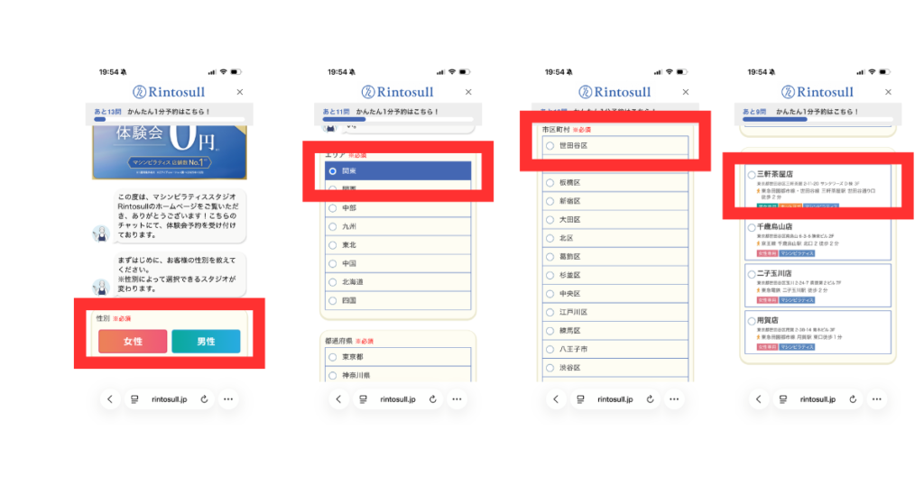 Rintosullの予約システムは、公式サイトの他にアプリ、LINEにも対応しています。